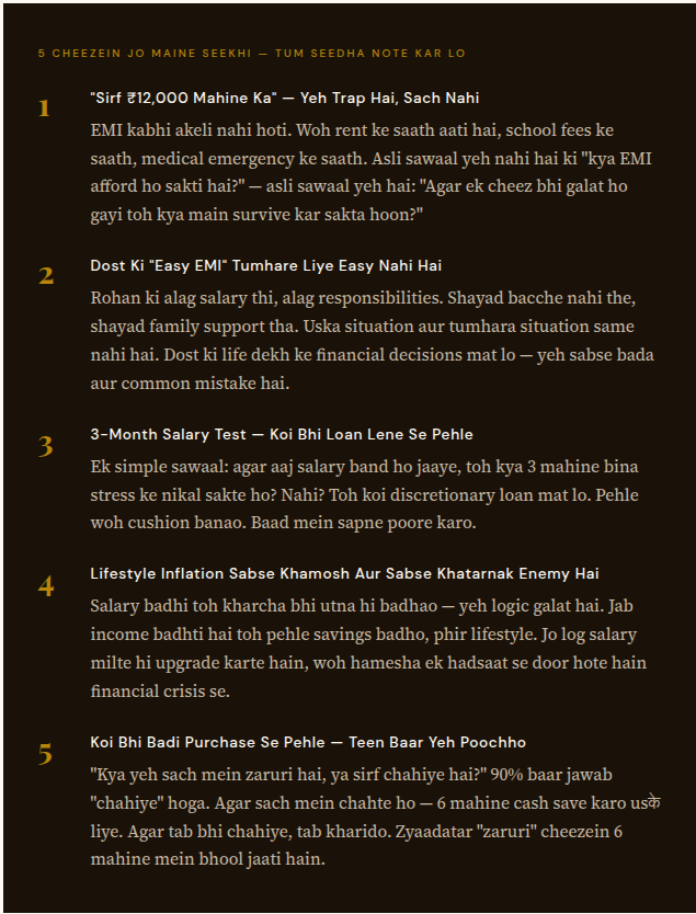Ek Mumbai software engineer ki kahani — jisne ek dost ki photo dekhi, ek raat mein loan apply kiya, aur phir realize kiya ki “sirf ₹12,000 mahine ka” actually kitna bhaari padta hai.